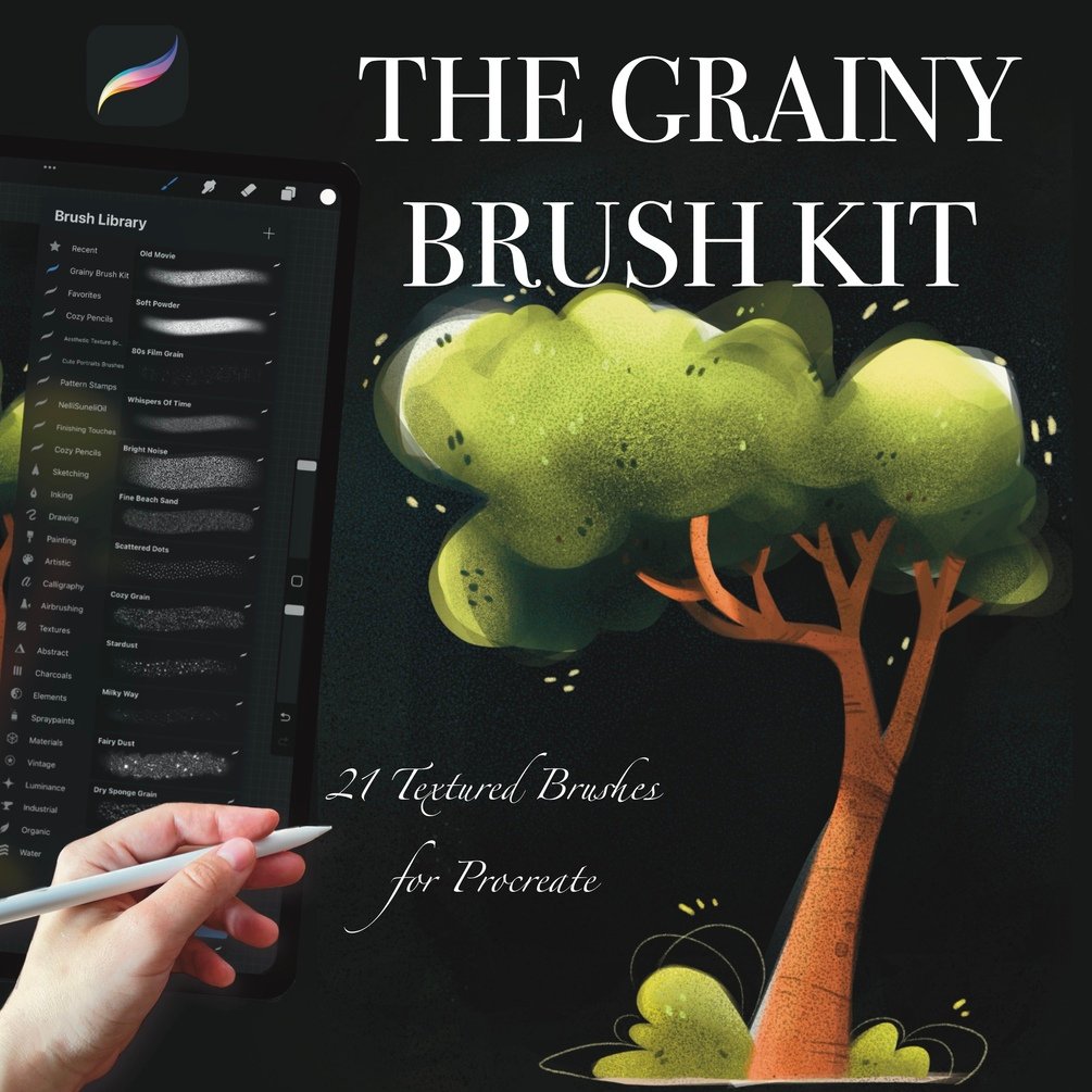 The Grainy Brush Kit — 21 Textured Brushes for Procreate